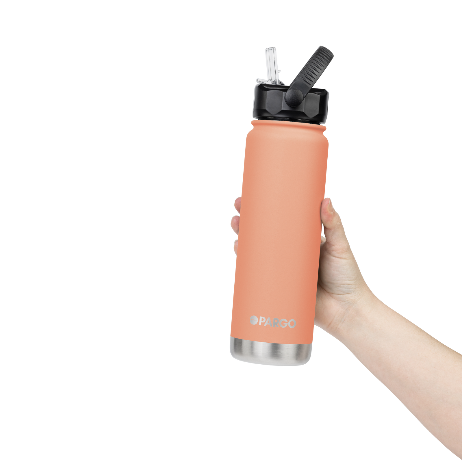 Designed to take you beyond| this 750ml Insulated Bottle with Straw Lid allows for so many activities| sans spillage. Our lids are leak-resistant and with our triple grip lid| it’s easy holdin' easy rollin' and easy sippin’.
