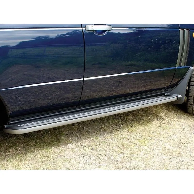 These are a quality Aftermarket part| and are satin aluminium with a rubber anti slip insert and mounlded end caps. As can be seen in the photo they include the front mud flaps| and camn be bolted on to existing mounting points. These come with fitting kit and instructions and as well as looking great| allow easier access into and out of your vehicle.