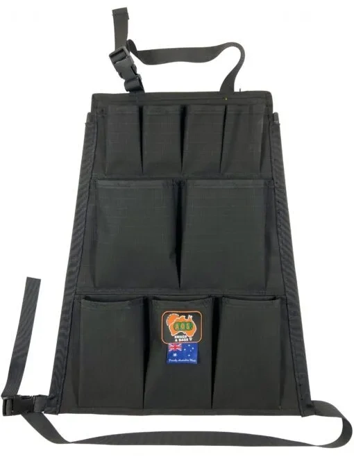 AOS 4WD Australian Made Rip Stop Canvas Universal Rear Seat storage Organiser with Stiffening Rods – 12 Pockets – Black