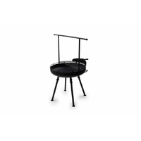 Meet your outdoor cooking match. When you’re ready to update your grilling system| the Barebones solid steel Cowboy Fire Grill System is the absolute go-to. Designed with direct input from Barebones open fire chef partners| this modular design allows for multi-use as fire pit| open fire grilling| and cooking station. Adjustable grill grate gives you choice for the source and distance of heat| creating perfect cooking conditions every time. Overhead tool storage and hanger bar is an organizer's dream with additional side table and grill grate available for purchase. Fire it up| cook| and feast just about anywhere| and when you’re done| break it down for storage. There’s no limit to what this grill system can do.