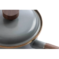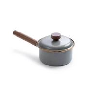 Evenly cook and heat sauces| soups| and more. Long walnut handle and steep pan sides keep you safe from bubbling liquids. Sophisticated enough for both your camp kit and kitchen cooking| the Saucepan features a hand-finished| baked stainless steel trim that creates a copper-like patina finish and matches our full enamelware line.