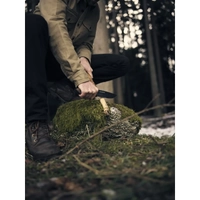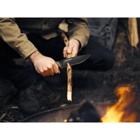 An indispensable outdoorsman’s knife for wherever the journey takes you. The high carbon tempered steel blade| reinforced by a full tang| proves reliable and strong as you attend to the rituals of the outdoors from making fire to setting up shelter and foraging. Purposeful details like an inlaid copper lanyard ring| waxed canvas sheath| and belt clip create a seamless experience and restore your focus on the moment.