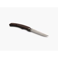 A high-quality culinary knife with pocket knife practicality. The Solo Folding Knife lets you enjoy your favorite foods from the patio to the picnic blanket. Its folding and locking stainless steel blade provide a safely packable cutting edge| and the hardwood handle and elegant design make it handsome enough for any setting.