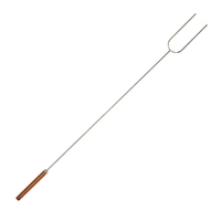 Heavy-duty chrome plated steel camping fork with stay cool wooden handle.
