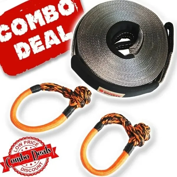 Carbon Offroad 20M 8T Winch Extension Strap And 2 X Soft Shackle Combo Deal CW-COMBO-8TWES-MFSS