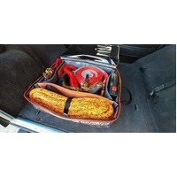 Internal sections which allow organisation are secured with heavy-duty velcro| allowing you to seperate recovery or other items like steel d-shackles and snatch blocks from each other eliminating noise from steel on steel contact while out on the road. Two of these sections include heavy duty mesh zippered pockets for small items allowing sensible packing and easy access when required.