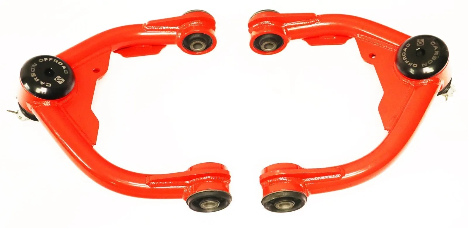 The Carbon Send-IT Upper Control Arms feature quality ball joints and high-quality rubber bushings| they are designed to correct alignment angles while maintaining factory ride quality. the H/D steel design provide the strength and durability needed for the most demanding environments.