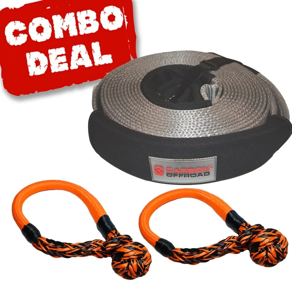 Carbon Offroad Snatch Strap And 2 X Soft Shackle Combo Deal CW-COMBO-CW-8TSS-MFSS