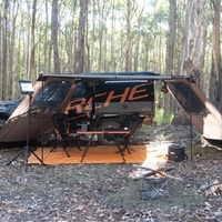 Transform your outdoor setup with the 120 Awning by DARCHE| the perfect companion for your adventurous 4WD travels. Delivering an impressive 5.1m² of versatile coverage| itâ designed to extend your living space with ease. Whether you’re seeking shade for a midday break or shelter from unexpected weather| this awning has you covered with its adaptable integrated walls that can be positioned at the front or sides. Engineered for simplicity| the 120 Awning offers a hassle-free setup| manageable by just one person| thanks to its smart fold-out pin-lock rafter arms. These arms swiftly lock into place| and the built-in LED strips provide ambient lighting for those cosy| late-night gatherings. The integrated leg poles ensure the structure remains stable| giving you peace of mind in any conditions. This model surpasses comparable pullout awnings by offering superior coverage| making it an ideal choice for those who need a little extra space. Its lightweight design is crafted to fit most vehicles and roof rack systems seamlessly| ensuring that no matter where your journey takes you| the 120 Awning is ready to go. With straightforward mounting options| itâ compatible with most standard roof racks| making installation a breeze. FEATURES Provides minimum 5.4sqm of coverage| with a lot more when the integrated walls are attached Integrated walls can be placed at the front or the sides of the awning to suit your setup Fold-out pin-lock rafter arms reduce setup and packdown time Built-in dimmable LED strips with white and amber modes Built-in leg poles Provides more coverage than a pullout awning of equivalent length Light weight suits most vehicles and roof rack systems SPECS Weight 17kg excl. walls| 22kg inc. walls Freestanding Wind Rating 25 km/hr Max. Head Height 2600mm Suits Vehicle Height 1400 to 2600mm Mount Type Side Fabric Material: 320gsm Ripstop Polycotton Canvas Frame Material: Extruded Aluminium Alloy Transit Cover Material: 820D Polyester Oxford Waterhead Rating 3000mm UPF Rating 50+ External Dimensions 3470L x 2000W x 1400-2600H mm Packed Dimensions 2200 x 150 x 150 mm Coverage 5.1 sqm Weight 17.0 kg Warranty 3 Years
