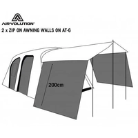 Get even more from your Air-Volutionâ AT-4 or AT-6 tent by adding an Air-Volutionâ Wall Kit. Providing extra shade or added shelter in rainy weather| these walls can be easily zipped to the huge front awning included with the tent. With the added walls| you can create an additional 7m² of shade and shelter to your setup. The kit includes 2 zip-on walls (LHS and RHS) and is made from the same tough 210D ripstop polyester oxford as the tent. FEATURES & SPECIFICATIONS & VIDEO Quick zip-on attachment gives you instant shade and shelter Includes 800 x 600mm mesh window Suits AT-4 and AT 6 Includes carry bag