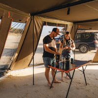 Get maximum versatility from your Gen2 270 Awning or Freestanding 270 Awning by kitting it out with the Eclipse 270 Mesh Wall Kit. With built-in mesh panels and wide doors| these walls are infinitely adjustable to suit any weather condition. The added walls can be used for protection against the elements or even as awning extensions for extra cover (poles sold separately). The zippered wall panels connect to allow for various wall configurations. The walls are made from quality 260gsm ripstop polycotton canvas and have an impressive PU 3000mm water rating and seam sealing that will keep you dry in rainy conditions. *NOTE: Eclipse Mesh 270 walls are not compatible or interchangeable with solid Eclipse 270 walls or 270 PVC window walls. FEATURES Provides up to 20.5 m² with all walls anchored Acts as a wind/weather break or as an awning extension (poles sold separately) Zippered wall panels allows for versatile configurations Zippered doors with mesh backing Includes pegs and guy ropes