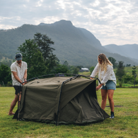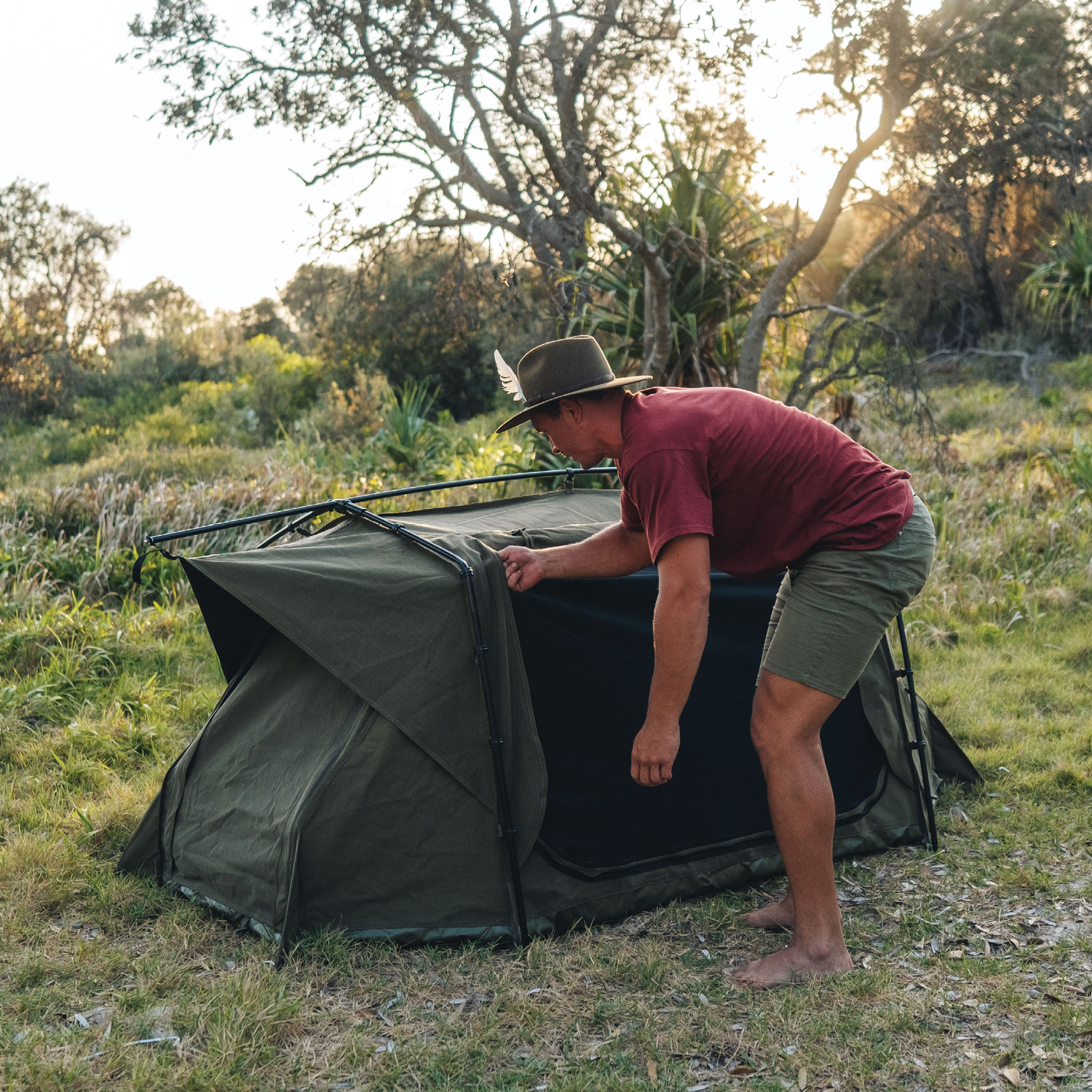 Darche√¢ bestselling Nebula Swag design is now available in a new smaller size and loaded with new features! Nebula Star 1250 Swag is enhanced with thoughtful new features for even better comfort and convenience outdoors. This latest model includes an integrated dual LED light | offering customizable lighting options to suit any time of day or night. The new storage loft and expanded storage pockets provide ample space to keep your gear organised and within reach. Plus| redesigned window orientations improve ventilation in rainy conditions| ensuring airflow without letting the weather in. Built for all-season durability and comfort| the Nebula Star 1250 Swag is ready for every adventure| rain or shine. FEATURES Hybrid design offers generous sleeping area for two Exceptional ventilation with four-way entry New window direction for better ventilation in rainy conditions Integrated internal dual colour dimmable LED light (power bank not included) Generous storage pockets and roof storage loft to stash your gear High-density 70mm foam mattress with removable cover Protection from the mozzies and other bugs with fine insect mesh on all doors and windows All-season protection including internal seam sealing and full-length welded PVC bucket floor Heavy-duty construction including no. 10 easy action zips on all doors Includes pegs and guy ropes Includes canvas swag bag with side grab handles| tensioning straps| and stainless steel D-ring SPECS Mat Thickness 70mm High Density Foam Materia l420gsm / 12oz Ripstop Polycotton Canvas Mesh 125gsm / 3.7oz Super-fine Polyester Insect Mesh Floor Material 600gsm / 18oz PVC with Welded Corners Frame √ò16mm 7001 Aluminium Alloy Poles Waterhead Rating 800mm Water Rated Sleeping Capacity 2 PERSON External Dimensions 2300 L X 1250 W X 1000 H mm Sleeping Area 2250 L X 1200 W mm Packed Dimensions 1250L X √ò290 mm Weight 16.5 kg Warranty 3 YEARS