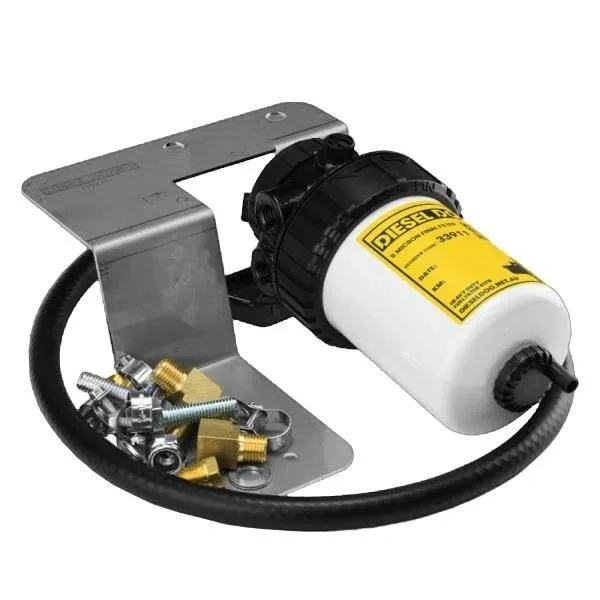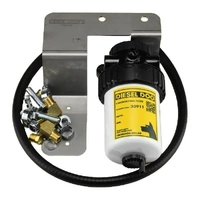 Diesel Dog Final Fuel Filters As the old saying goes| prevention is better than cure. The same is true for your diesel engines. Prevention| in this case| comes in the form of diesel fuel filter kits. A high-quality final fuel filter is vital for protecting advanced| high-pressure systems and allowing your engine to run at peak performance. Modern diesel engines are fitted with advanced high-pressure| electronically controlled injection systems. These engines are designed to provide significant improvements in combustion efficiency| power and economy| running at extremely high pressure and very close tolerances. However| advancement comes with a price: modern systems are susceptible to damage| as a result of poor-quality fuel and more commonly| contaminated fuel. Whether it be water or particles that pass through| repairing damage due to contamination can be truly expensive! One way to give yourself peace of mind is to add heavy-duty protection to your common rail diesel. Diesel Dog has the answer. This 4WD Filter kit comes complete with: 2 or 5 micron fuel filter unit Vehicle-specific mounting bracket All fuel hoses| clamps| nuts and bolts Why do I need an additional filter? Current generation diesel engines are fitted with common rail fuel injection systems. These engines offer huge improvements in power and economy compared to diesels of 20 years ago. To achieve this performance| common rail injection systems run at extremely high pressure and very close tolerances. More than ever before| extra protection is critical to avoid costly injector and fuel pump damage & downtime. Standard factory filters simply do not offer the protection and water stripping ability that is needed to ensure the fuel quality needed. Does this filter go before or after the factory filter? The Diesel Dog kit is set up after the factory filter as a final filter. This is so everything missed by the factory filter is caught before it can do any damage. Can I fit this additional filter myself? Yes! The Diesel Dog kit comes complete with filter unit| vehicle specific stainless steel mounting bracket and all fuel hose| clamps and hardware required to install. Detailed fitting instructions with colour pictures make it very straight forward to fit. How often do I change the final filter? Simply change the final filter when the factory filter is changed. Do these fit with dual battery setups? Yes. On most applications it has been designed to fit with duel batteries. If in doubt| please check installation pictures or contact us for any assistance! Will this restrict the fuel flow? No. The filter unit is designed to support sufficient fuel flow for engines rated up to 260 kilowatt. Will it affect fuel consumption or performance? No. Installed correctly an additional filter will not alter fuel consumption or performance.