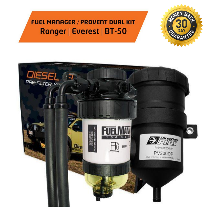 Direction Plus™ Fuel Manager Pre-Filter and Provent Kit FMPV661DPK fit in Ford Ranger| Everest| and Mazda BT-50 models.