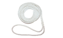 Quality white polyethylene staple "silver" rope with a large soft eye splice on one end to throw over a cleat or bollard.