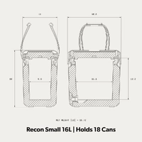 Compact enough for quick trips or as an auxiliary cooler for your stackable multi-unit Recon system| the 16L capacity holds 18 cans| is tall enough for wine bottles| and designed to optionally fit in your car’s footwell.