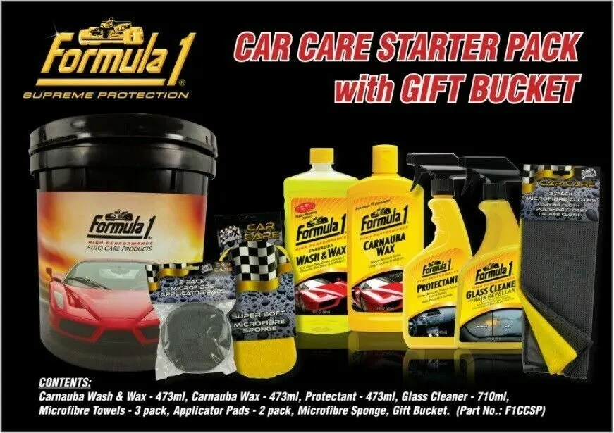 Formula 1 Car Care Gift Pack Wash Wax Glass Interior Sponges Clothes Pads Bucket