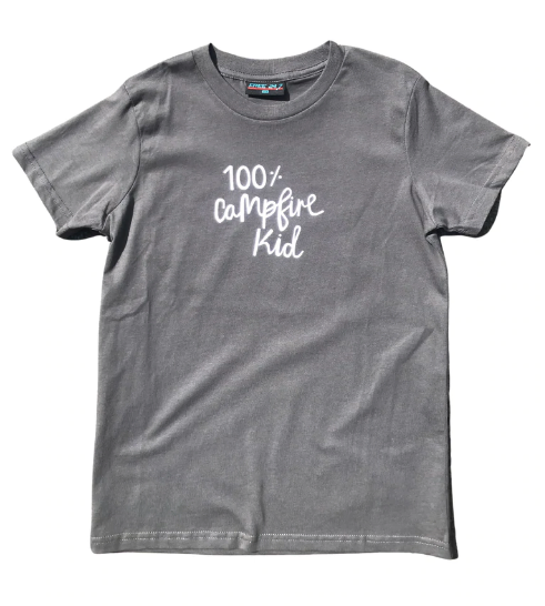 A Camping Trip essential.  Built to last with a large front graphic print and small rear hem print.  Finished in sturdy Combed Cotton| order the next size up as it's going to last.  Loves a Caravan Park Washing Machine!