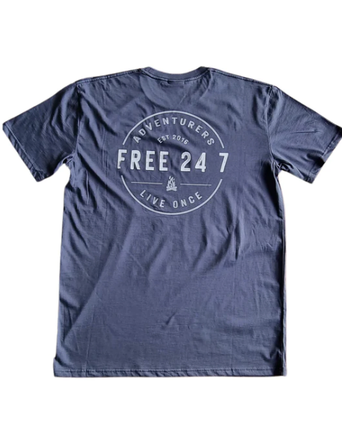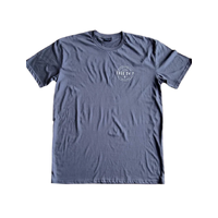 Classic T is perfect for the next ADVENTURE.  Simple small pocket print and large rear print.  Finished in Kembla Blue Steel| stick to your roots and load the Rig and go!