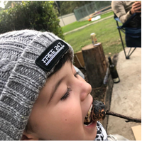 Classic cable knit Grey Winter beanie detailed with a small front woven badge