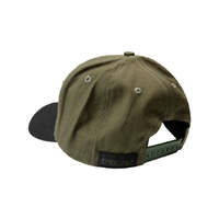 Universal fitting Cap with great shape in a 6 panel make.  Camo Green with a Black semi curve peak - detailed with embroidered front patch & rear woven badge