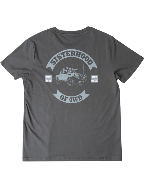 Out there hitting the tracks| these ones for you.  A sizeable rear graphic that celebrates the lifestyle AND being a chick!  Small front pocket print.  Comes in our most popular cut of T for the girls - a genuine go-everywhere T