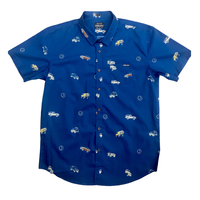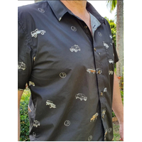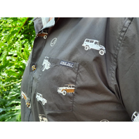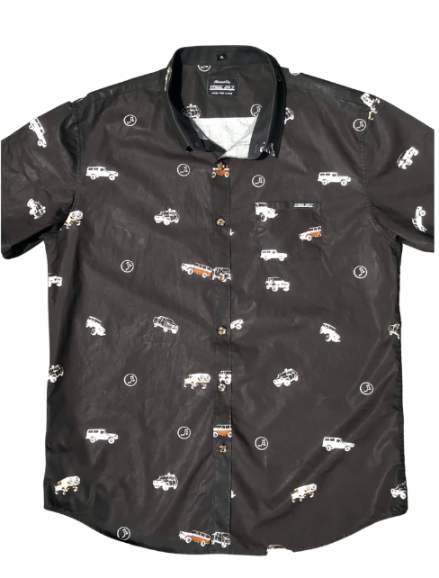 A 4x4 Button Up Shirt like no other.  Detailed with Legendary Gear Cog Buttons and Lifestyle labelling.  A collection of Classic 4WD Rigs that have stood the test of time.  A SWB45| 55 Series| 79 Dual Cab| 80 Series| 200 Series| Hi Lux & Troop Carrier.  Throw in a 4WD Gear Selector Knob print & you've got a Shirt that you'll never want to take off.  THIS SHIRT SELLS OUT FAST.