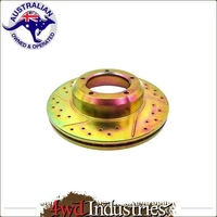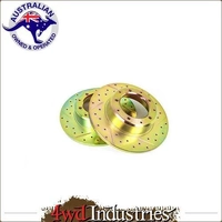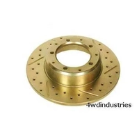 Grooves are machined into the brake disc to force away the dust and gasses that build up between the pad and disc| keeping the brakes cooler and reducing fade. The cross drillings contribute to cooling and heat dissipation and also allow the gasses to escape. Of course they fill with mud when off-road| clean them out afterwards when washing the vehicle to maintain performance and pad life| with the angled grooves it is found that they self clean in most cases.