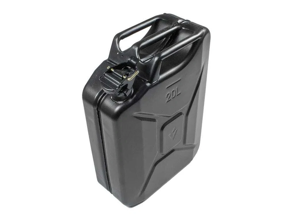The highest quality Jerry can out there. Manufactured from 0.8mm Steel. Dual pan construction. Seam welded for extra strength. Three Handle Configuration. Leak-proof Bayonet Closure. Locking pin in cap. Strengthened hinge on cap to prevent accidental bending when closing. Lined inside with petrol-resistant enamel to prevent rusting. Black painted exterior. For easy pouring JCFU006 is recommended. *sold separately Stores snug in Front Runner's JCHO013 or JCHO014 *sold separately Note: This Jerry can is not designed to carry water. For a water solution please use WTAN073 or WTAN070.