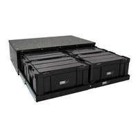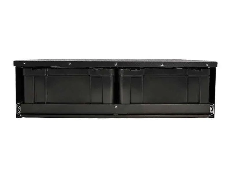 If Front Runner doesn’t offer a vehicle-specific drawer kit for your make and model vehicle| consider this “universal” drawer kit. Since these drawers will only fit into appropriately sized vehicles| please see SPECS for exact product measurements.   This specific drawer kit was designed to fit into vehicles with a smaller than usual cargo area. This 4 Cub Box Drawer / Wide kit includes a sliding drawer system| latch mechanism and detailed fitment instructions. SBOX001| the heart of this modular storage system| are perfectly sized for kitchen support| dried goods| tools| camera gear| toiletries| even cloths. These latch-to-close| stackable and durable Cub Pack storage containers are made from black| high strength plastic and have integrated grips for easy carrying. High-strength bearing slides allows the drawer to extend nearly 100% from the anchored base. Fitted with a latching mechanism| the drawer is kept in place when in the closed position. 113kg/ 250 lb per drawer load carrying capacity. The flat deck allows you stack 150kg / 331 lb of gear across the surface. Customize your own storage configurations. Stack and secure luggage| SBOX031| SBOX001| aluminum boxes and other storage containers to the upper deck using STRA034 or other straps as well as RAIL007 and RRAC012. Finished with the same durable black powder coating as the Front Runner Slimline II Rack. The 4 Cub Box Drawer / Wide can be easily installed. Depending on your vehicle’s make and model| drilling may be required. All Front Runner Storage Systems are backed by a 2-year warranty.   Note: These “universal” drawers do not come with a vehicle specific deck completion set or faceplates.If this Drawer system is not mounted onto a rigid surface| we recommend adding SSCA021 or SSCA020.If you have any questions about whether or not this product will fit your vehicle| please contact Front Runner before purchase.*Please Note: Cub Packs are not included when purchasing this Drawer System and are sold separately.Please Note: Installation of this product requires a Rivnut tool. We suggest using the VACC016.