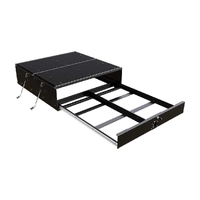 Consists of:1 x Drawer unit with 1 Opening Drawer1 x Push to close latch with 2 keys3 x Accessory Channels6 x Tie Down Rings6 x Cub PacksInstallation HardwareFitting InstructionMaterials used:Black powder coated steel - FrameCarpet Laminated Plywood - Top DeckProduct Dimensions:Overall Dimensions:1000mm (39.4) L x 950mm (37.4) W x 285mm (11.2) HOpen Drawer Dimensions:1915mm (75.4) L x 950mm (37.4) W x 285mm (11.2) HInner Drawer Dimensions:946mm (37.2) L x 890mm (35) W x 222mm (8.7) HWeight:64.3kg (141.8lbs)Load Rating:113kg (250lbs)Special Notes:Items can be secured to the top deck using the 6 supplied tie down rings and fitting them accordingly to the 3 accessory channels on the top deck.Drawer has a hold open feature.