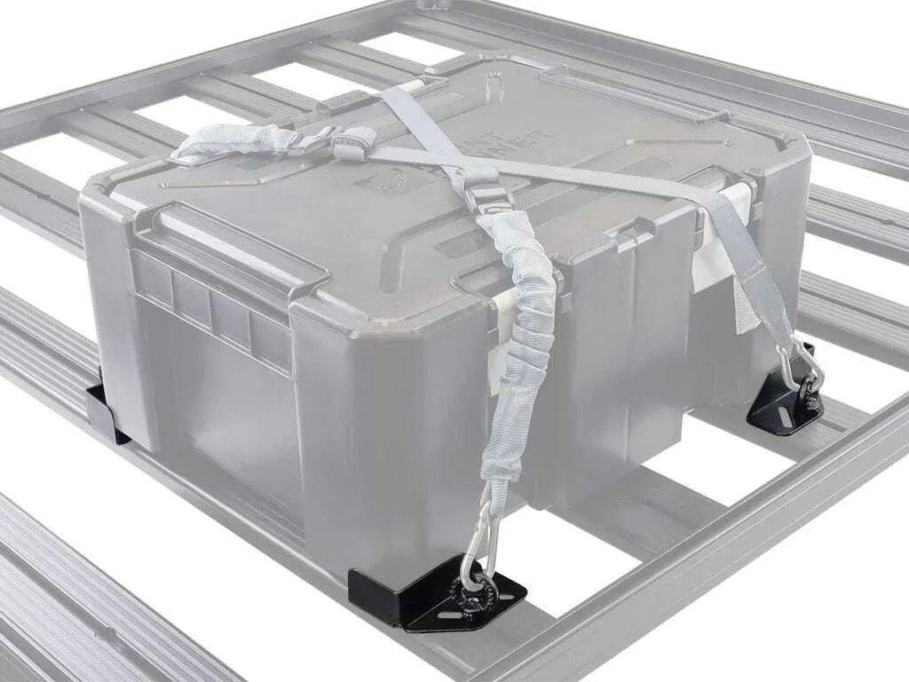 Consists of:4 x Rack Cargo Chocks4 x Eye NutsInstallation HardwareFitting InstructionsMaterials used:Black powder coated steelProduct Dimensions:100mm (3.9'') L x 82mm (3.2'') W x 42mm (1.7'') H (Per Bracket)Weight:1.04kg (Per Set of 4)