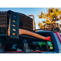 The Front Runner Axe Mounting Bracket is a safe and secure option for traveling with your long handled axe. Bolts slide in to the slot of a Front Runner Slimline II side rail or can be adapted and bolted to other racks or surfaces. Axe head is protected in steel cage. 2mm (0.078”) Black powder coated steel. Can accommodate most axe sizes. Mounting requires axe handle to have hole diameter of 12mm (0.5'').