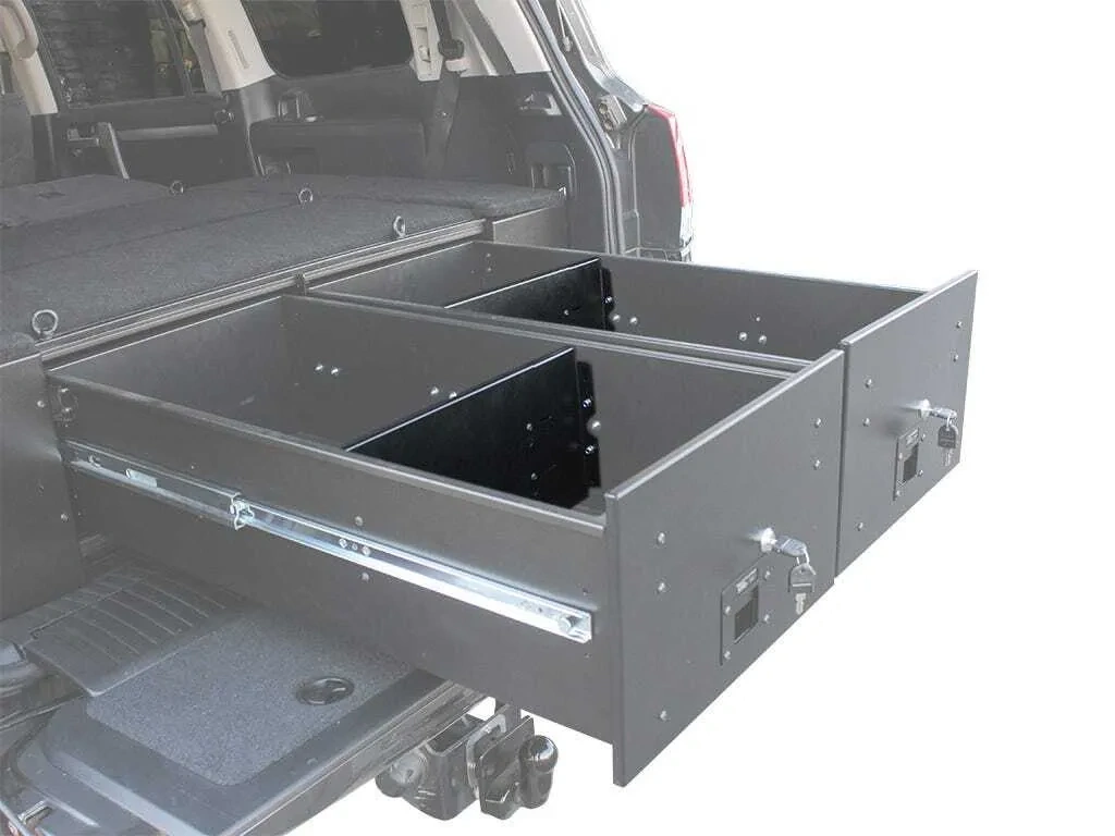 Create partitions to further organize gear| tools| supplies and food with these adjustable drawer dividers. Sold in sets of 2. Can extend to fit specific drawer widths. (See below for further details.) Each drawer can fit a total of 3 to 4 dividers depending on base drawer unit model. (See below for further details.) Each drawer is designed with fixed mounting points for the Drawer Dividers. Each Drawer Divider is secured with supplied hardware to the sides of the drawers at fixed intervals (divider positions vary depending on drawer unit) Made from the same grade steel as all Front Runner Drawer Systems. Black powder coated with the same durable finish as the Front Runner Drawer Systems. Installation hardware and fitment guide included. DRAWER FITMENT DETAILS:** Vehicle Specific Drawer kits are comprised of a base drawer unit and a vehicle specific fitment kit. You can find your specific base drawer unit model number in the SPECS tab of the vehicle specific drawer kit product page. Drawer model: {SSDR002} Max 4 dividers per drawer 222mm / 8.7'' apart.Drawer model: {SSDR003} Max 3 dividers per drawer 222mm / 8.7'' apart.Drawer model: {SSDR005} Max 4 dividers per drawer 260mm / 10.2'' apart.Drawer model: {SSDR010} Max 4 dividers per drawer 220mm / 8.7'' apart.