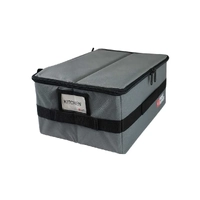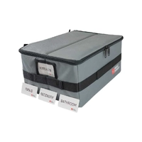 Line your SBOX031 with 1 or 2 compartments. The center divider is adjustable depending on your storage needs. Or| use this box as a stand-alone storage solution. This box is manufactured with rigid plastic walls| a canvas exterior| and vinyl lined interior. Sturdy carrying handles on the sides. Convenient plastic sleeve for labels. Supplied with handy pre-printed content labels for TOOLS| RECOVERY| KITCHEN BATHROOM items or flip them over and use the blank side for creating your own custom labels. Heavy duty zipper. When not in use| the box cleverly folds completely flat!