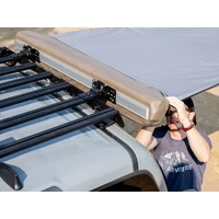 A pair of brackets that secure to the slats of your Front Runner Slimsport Rack. Mounts Front Runner side mount accessories such as: RRAC222 RRAC024 Installs in the T-slots of the Slimsport Rack and can be inversed to allow for standard or lower mount depending on roof clearance. Made from black powder coated 6063 T6 aluminum to match your rack accessories. Supplied with installation hardware and fitting instructions. Note: This product is only compatible with the Front Runner Slimsport Rack Kits.