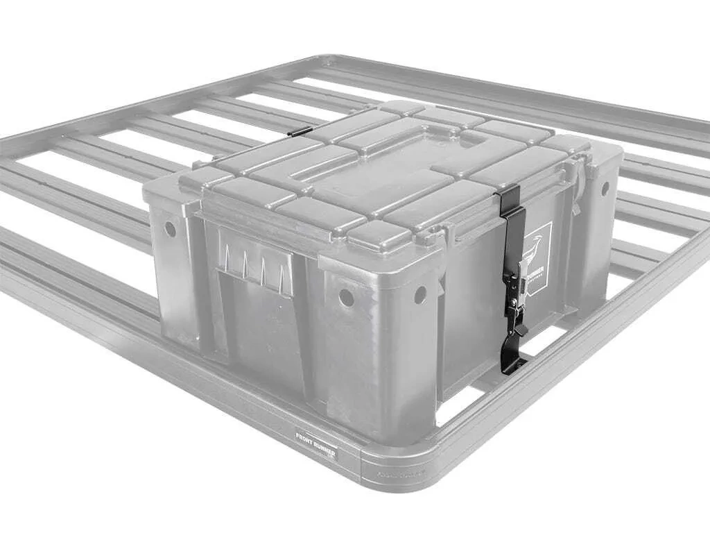Secures and holds the SBOX008 firmly in place on top of your rack. Versatile placement allows the SBOX008 to be secured either length or cross ways on the rack. Effortlessly access the SBOX008 by easily releasing the quick release latch. The bracket can be locked with a padlock or RRAC134 (not included) for extra security and peace of mind. Includes 2 strips of T Slot rubber to prevent any damage to your rack while creating a non-slip surface. Can be used together with RRAC129 for extra support on extreme terrain. Made from steel and powder coated with the same durable coating as the Front Runner rack. Installation hardware and fitting instructions included.*Please Note: The Wolf Pack Hi-Lid is not suitable with the Wolf Pack Rack Mounting Brackets. The Hi-lid can be used with RRAC129 and RRAC150.