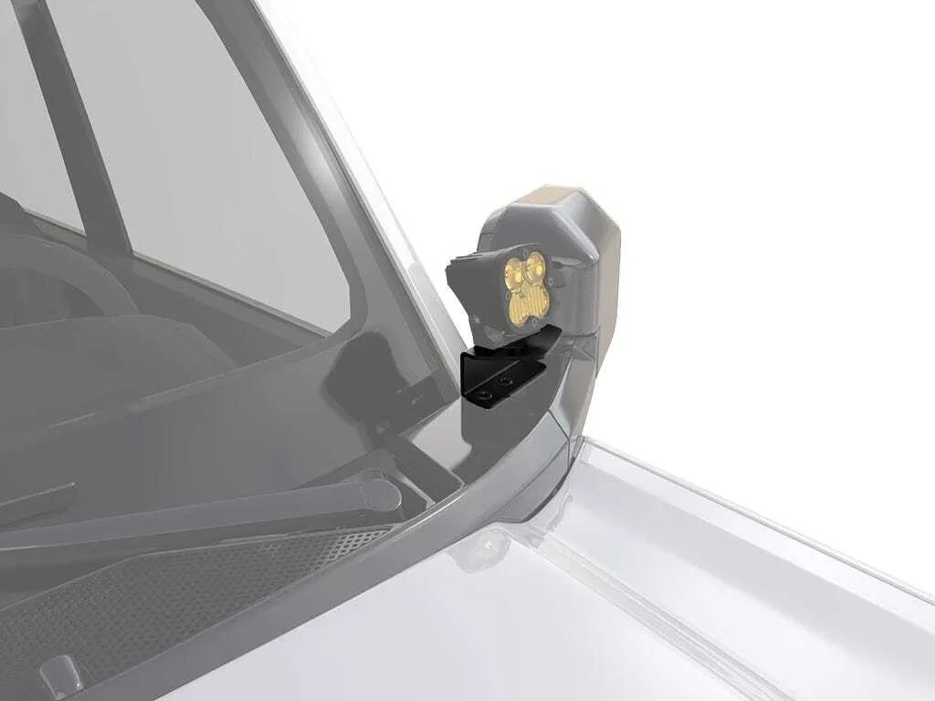 Durable spot light mounts for your Ford Bronco. Installs easily to the hood latch using existing factory bolts. No drilling required. This Bracket allows fitment of various pod lights to increase field of vision at night. Can also be used to mount small antenna's. Sold in pairs.