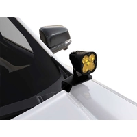 Durable spot light mounts for your Ford Ranger T6 (2019-2022). Installs easily to the hood latch using existing factory bolts. No drilling required. This Bracket allows fitment of various pod lights to increase field of vision at night. Can also be used to mount small antenna's. Sold in pairs.
