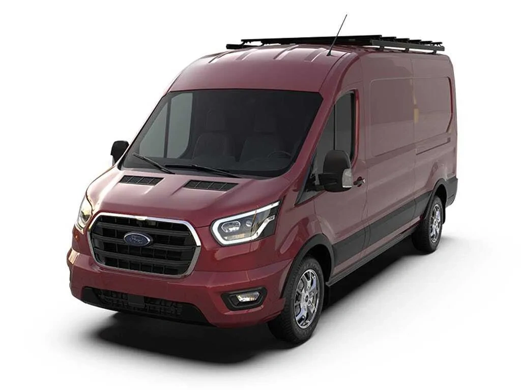 KVFT001T - Ford Transit (L2H2/130'' WB/Medium Roof) (2013-Current) Slimpro Roof Rack Kit - by Front Runner Consisting of:3x FAVF003 - Ford Transit Van Rack Foot Set1x RRAC207 - Van Rack Joiner Kit2x RRAC208 - Van Rack Side Profile End Caps3x RRNS1425 - Narrow Slat / 1425mm (Pair)2x SPVT001 - Van Rack Side Profile / 1156mm1x WDST013 - Wind Deflector Van Rack 30mm Lip Material Used:Black epoxy powder - coated T6 aluminiumHigh strength steel Assembled Rack Kit Dimensions:2368mm (93'') L x 1470mm (57.9'') W x 123mm (4.8'') H Approximate Installed Weight: 26.59kg (58.62lbs) Ford Transit Van Rack Kit heights are 125mm from the bottom of the roof ditch to the top of the slat. (Z brackets can not be inverted) all measurements are taken from bottom of roof ditch to top of the rack slat. The slat T slots and side profiles take standard M8 hex bolts top and bottom. Shipping Dimensions:Width: 300mm (12'')Length: 1805mm (71'')Height: 195mm (8'')Shipping Weight:Weight: 29.35kg (65lbs)