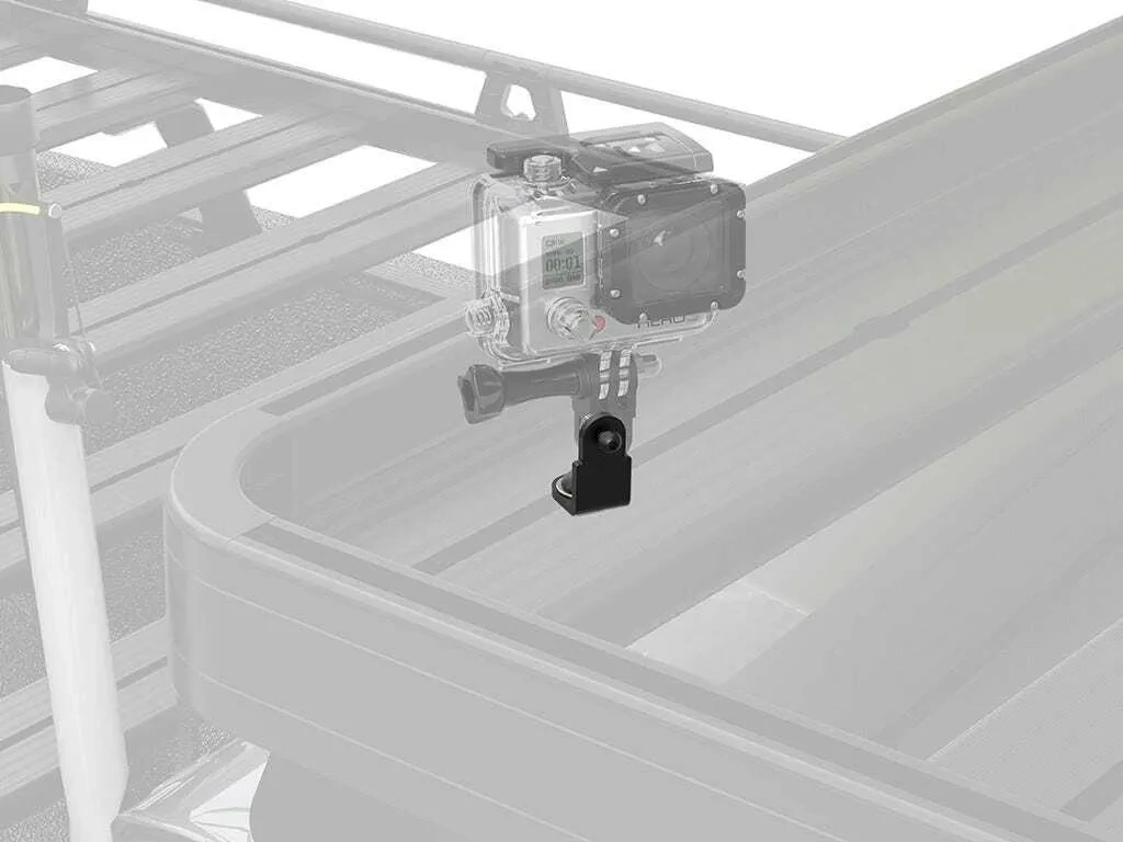 This Front Runner bracket allows you to mount your GoPro action camera effortlessly and quickly to your Slimline II roof rack or load bars.   Bolts into the side profile channel of the Slimline II rack or your racks slats’ T-slot. Made from 3mm steel. Black powder coated in the same resistant coating as the Slimline II rack. Allows your camera to be adjusted to the required angle using the 3-Way Pivot Arm* (not included) which attaches to the Front Runner Rack Mount Bracket. *GoPro/GoPro Housing and Pivot Arm are not included