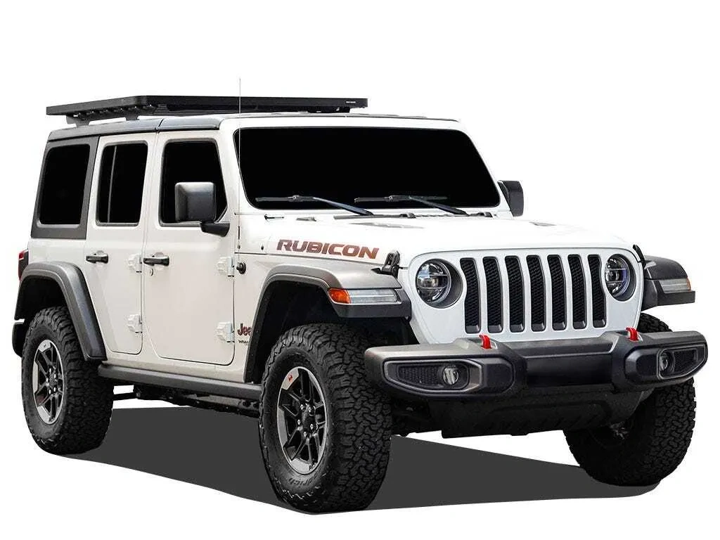 This Slimline II 1/2 rack kit contains all the components needed to mount the Slimline II cargo carrying rack to a Jeep JL 4 door including the Slimline II tray (1425mm x 1358mm)| the Jeep Extreme Mounting System and a Wind Deflector. Drilling is required for installation.The JL Extreme mounting system bolts to existing mounting points on the chassis and roll cage. This unobtrusive| high performance| nearly indestructible mounting solution allows you to quickly remove the Freedom Panels with the rack in place. The windscreen can also be lowered without any interference. The cargo weight is evenly distributed across the roll bars and body of the jeep| placing zero weight on the hard top itself. All Front Runner Rack Kits contain installation instructions as well as all the components and hardware needed to mount the Slimline II Tray to your vehicle. These Foot Rails allow for a Front Runner under rack mount table (1 smaller TBRA018 or 1 larger TBRA017) to be fitted. All Front Runner Racks are backed by a Limited Lifetime Warranty* For further information on installation| please see the fitment instructions in the INSTALL tab.