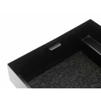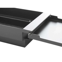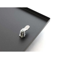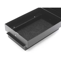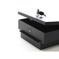 Consists of:1x Under console safe2x Keys supplied Materials used:Black powder-coated mild steelCarpeted base Product Dimensions:433mm (17.1'') L x 275mm (10.8'') W x H 100mm (3.9'') Internal Dimensions:375mm (14.8'') L x 265mm W (10.4'') (Raised section)/205mm (8.1'') W (Lower Section) x 107mm (4.2'') H Weight:3.2kg (7.1lbs)