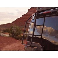 A ladder that clips over the top of the Discovery 3 4’s / LR3| LR4's rear door and bolts behind the license plate. The ladder conforms to the contours of the vehicle and is constructed out of black powder coated 304 stainless steel to ensure durability and strength. Easy installation: the top part of the ladder clips over the rear door and uses existing mounting points for fitment.  No drilling required.  The top and bottom treads are textured for added grip and the top clip is lined with rubber to avoid damage to the vehicle's paint work.