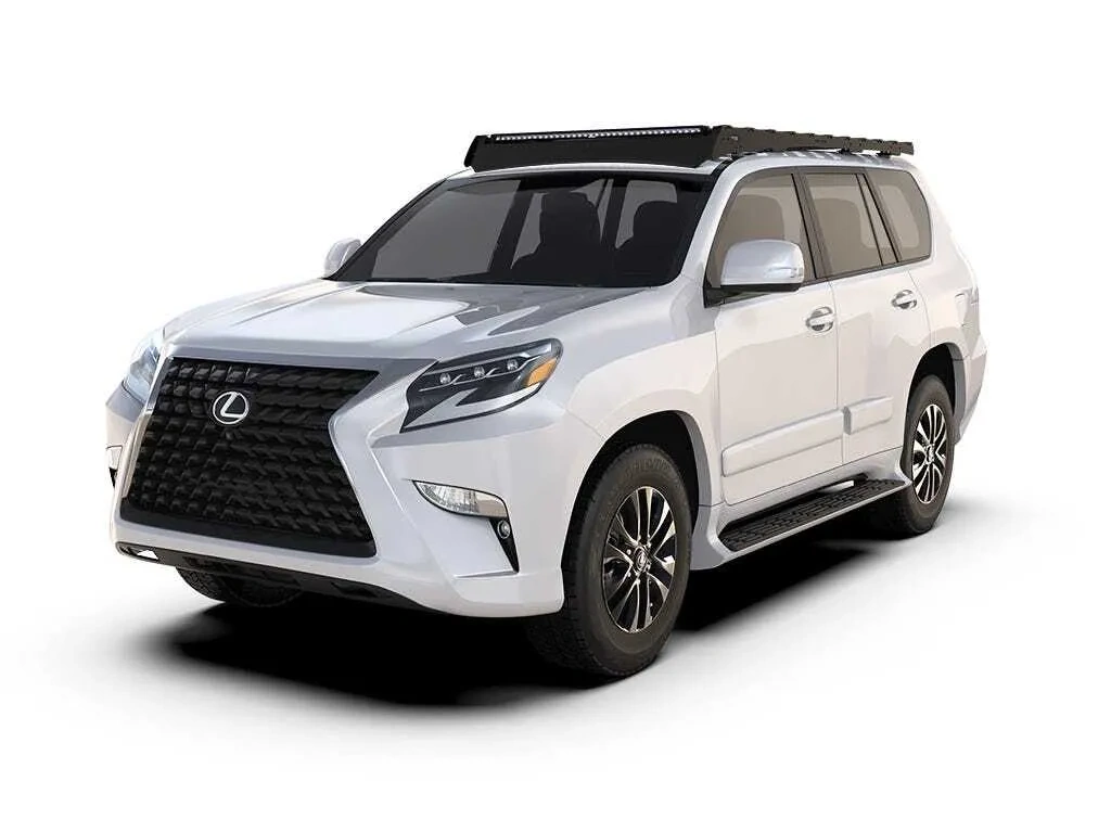 KSLG002T - Lexus GX 460 (2010-Current) Slimsport Roof Rack Kit/ Lightbar Ready Consisting of: 1x KSLG001 - Lexus GX 460 /Toyota Prado 150 Slimsport Tray1x RRAC276 - Lexus GX 460/Toyota Prado 150 (2010-Current) Slimsport Rack Wind Fairing Lightbar Ready1x RRAC971 - Protection StripMaterial Used:Black epoxy powder - coated T6 aluminiumHigh strength steelAssembled Tray Dimensions:2080mm (81.9'') L x 1188mm (46.8'') W x 137mm (5.4'') HApproximate Installed Weight: 34.02kg (75lbs) The t-slots on the tops and bottoms of the slats accommodate standard 8mm bolts.To determine the approximate height from your vehicle’s roof to the top of your Slimsport Rack add 60mm-70mm (2.4''-2.8'') to the highest point of your roof.Shipping Dimensions:Width: 325mm (13'')Length: 1705mm (67'')Height: 230mm (9'')Shipping Weight:Weight: 37kg (81lbs)