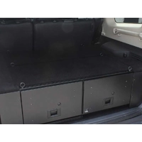 Consists of:1 x Drawer Base unit (SSDR005)2 x Carpeted laminated plywood Side Decks (L/R)1 x Wing Set for fitting the Side Decks (L/R)2 x Push to close latch with 2 keys per lock3 X Accessory channels6 x Eye Nuts for accessory channelsInstallation Hardware includes 4 turnbuckles to secure unit to vehicleFitting InstructionMaterials used:Aluminum - Accessory Channels Sub FrameBlack powder coated steel - Drawer Bins FrameCarpet Laminated plywood - Top Deck Deck SetProduct Dimensions:Overall Dimensions:880mm (34.6) L x 1365mm (53.7) W x 328mm (12.9) HInternal Drawer Dimensions:Left Hand Side:817mm (32.2) L x 386mm (15.2) W x 213mm (8.4) HRight Hand Side:817mm (32.2) L x 386mm (15.2) W x 213mm (8.4) HWeight:72.12kg (159lbs)Special Notes:4 Drawer Dividers (SSCA048) can fit each Drawer