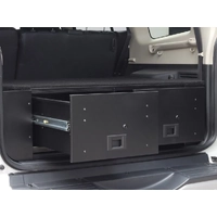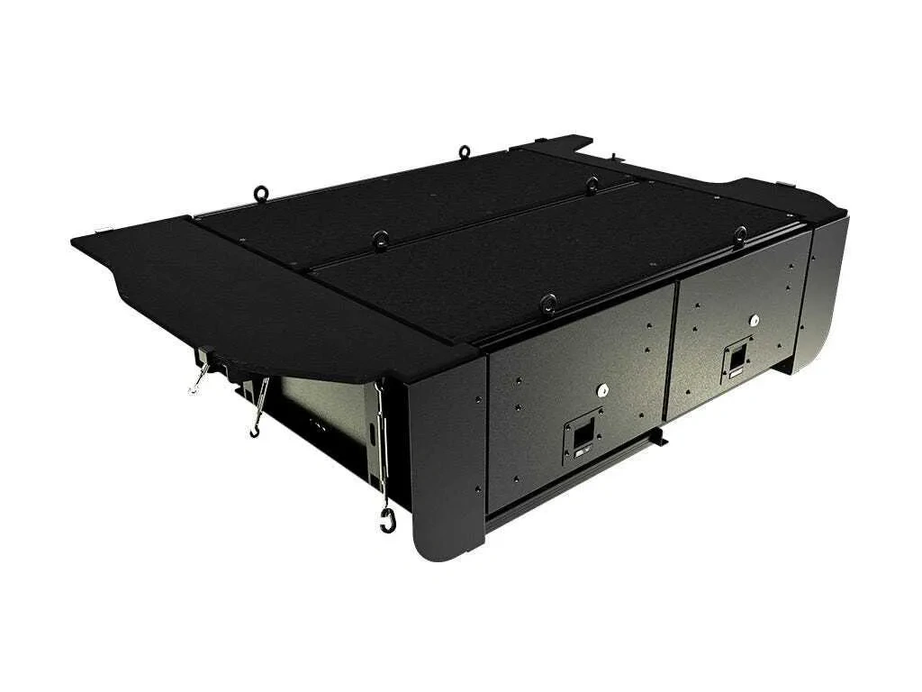 This drawer kit has 2 lockable drawers| 2 keys per lock| 3 tie down rails| 6 tie down rings| deck completion set| face completion set| brackets| all necessary installation hardware| and detailed fitment instructions. 113kg / 250 lb per drawer load carrying capacity. High-strength bearing slides allows each drawer to extend nearly 100% from the anchored base. Provide peace of mind and security by locking away important travel items such as computers| smart phones and camera gear. The flat deck incorporates three cargo attachment channels and 6 SSCA047. Customize your own storage configurations. Stack and secure luggage| SBOX031s| SBOX001s| aluminum boxes and other storage containers to the top deck using STRA034 or other straps. The deck above the drawers can also be used to mount Front Runner Cargo / Fridge Slides. The side decks are easily removable creating storage space between the drawers and vehicle for a variety of items such as tools| jumper cables| tow ropes| diving snorkels| masks| fins| kindling| barbeque skewers| etc. To create compartments within the drawers| add the optional steel SSCA050. Helps organize and stop excessive movement of gear and supplies. Sold in pairs| these drawers can accommodate up to 4 dividers per drawer. The deck is covered with a durable| UV resistant nylon pile black carpet detailed to complement the vehicle’s interior contours. The nylon carpet surface creates resiliency for securing cargo while insulating against noise and vibration. Finished with the same durable black powder coating as Front Runner Roof Racks and other Front Runner products. This drawer kit can be easily installed in minutes by attaching the supplied carabiners and turnbuckles to the vehicle’s existing mounting points and the drawer mounting brackets. Removing the drawers is just as easy. All Front Runner Storage Systems are backed by a 2 year warranty.Note: This drawer system can be installed with or without the factory Rockford Fosgate sound system installed.*Please Note: Drawer Dividers are not included when purchasing this Drawer System and are sold separately.
