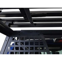 Securely bolts to the Pro Bed System| behind your vehicle's cab. Easily access your adventure gear and additional supplies when strapped to the Pro Bed Rack Headboard Molle Panel. Made of high-strength steel and sealed in the same durable black powder coating as the Front Runner Pro Bed System.