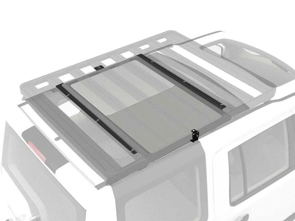 These brackets have been designed to work in conjunction with the TBRA015| the TBRA019 and Under-Rack Table Latch - by Front Runner to make taking a sturdy table along with you on your travels as simple and effortless as possible. Pro Stainless Steel Table Under Rack Bracket - by Front Runner: A no-noise and secure storage solution designed specifically for the Pro Stainless Steel Camp/Prep Table or Pro Stainless Steel Prep Table with Basin - by Front Runner. The brackets can be mounted both parallel and perpendicular to the roof rack's slats giving the option to access to the table from either the side or rear of the vehicle. Easy installation. Made of steel that is black powder coated in the same durable and corrosion resistant coating as the Front Runner Slimline II roof rack. Under-Rack Table Slides Latch - by Front Runner: Keeps the Pro Stainless Steel Camp/Prep Table or Pro Stainless Steel Prep Table with Basin - by Front Runner securely stored in the Under-Rack Table Brackets - by Front Runner. Secured to the top of the Slimline II rack using the T-slot and clamps over the lip of the table to keep it in place. A rubber insert prevents rattling and damage to the table. Spring loaded for ease of use. Lockable for added security. Made of steel that is black powder coated in the same durable and corrosion resistant coating as the Front Runner Slimline II roof rack. NOTE: A min clearance of 65mm (2.5'') between the underside of the rack and the crown of the roof is required for fitment of a Front Runner Table Kit.