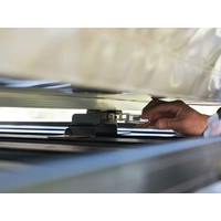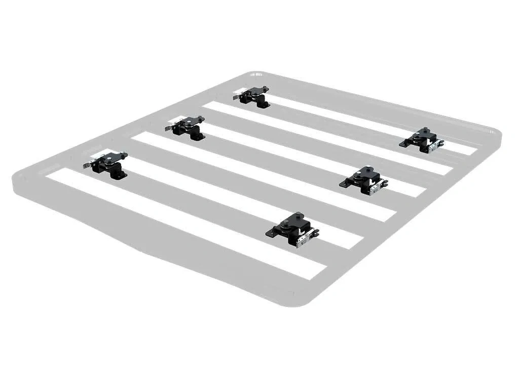 Once these brackets are installed on a Front Runner Rack| no tools are needed to remove or install a roof top tent. Simply release the tabs on the 6 latches and lift the tent away in seconds. No more wrenching in tight spaces during the ‘off-season’ or time-consuming weekday removal of a roof top tent. This strong and rattle-free mounting system is built off-road tough for use with Front Runner Racks. Compatible with the TENT031 and other popular soft shell tent brands like TJM| ARB| Tepui| etc*. Compatible with hard shell tents such as Autohome/Maggionlina| and James Baroud*. Hard shell tent owners please read **IMPORTANT NOTE below. 6 low profile base brackets are bolted to a Front Runner Rack while 6 self-aligning bushes are secured to the tent base channels using the appropriate Tent Channel Set. Secures in place with 6 latches with safety catches. Can be locked using RRAC134 combination cable lock. Certain tent sizes and designs will dictate the height needed to clear the edge of the Front Runner Rack. The brackets are small| unobtrusive and can be left on the roof rack when the tent is not mounted| leaving vast rack space available. No tent modification is required. Removed tents can be stored on the ground| raised slightly off the floor by the supplied bushes. Supplied with all required mounting hardware. Fitting instructions are included. TBMK035 or TBMK037 may be required for other tent brands (sold separately). *Soft shell and hard shell tents may need additional Nut Plates| sold separately. **IMPORTANT NOTE: Hard shell tents need additional support. If you are using these brackets with hard shell tents| such as James Baroud or Autohome| and you are unable to position the tent to rest directly on the rack| or the edges of the rack side profiles| use - TBMK009. Depending on the tent manufacturer| your hard shell tent warranty may be voided if your tent becomes damaged and you did not provide proper lateral support for the hard shell tent. Note: Extra Mounting Brackets may be required for some tent and rack combinations which require extra support.
